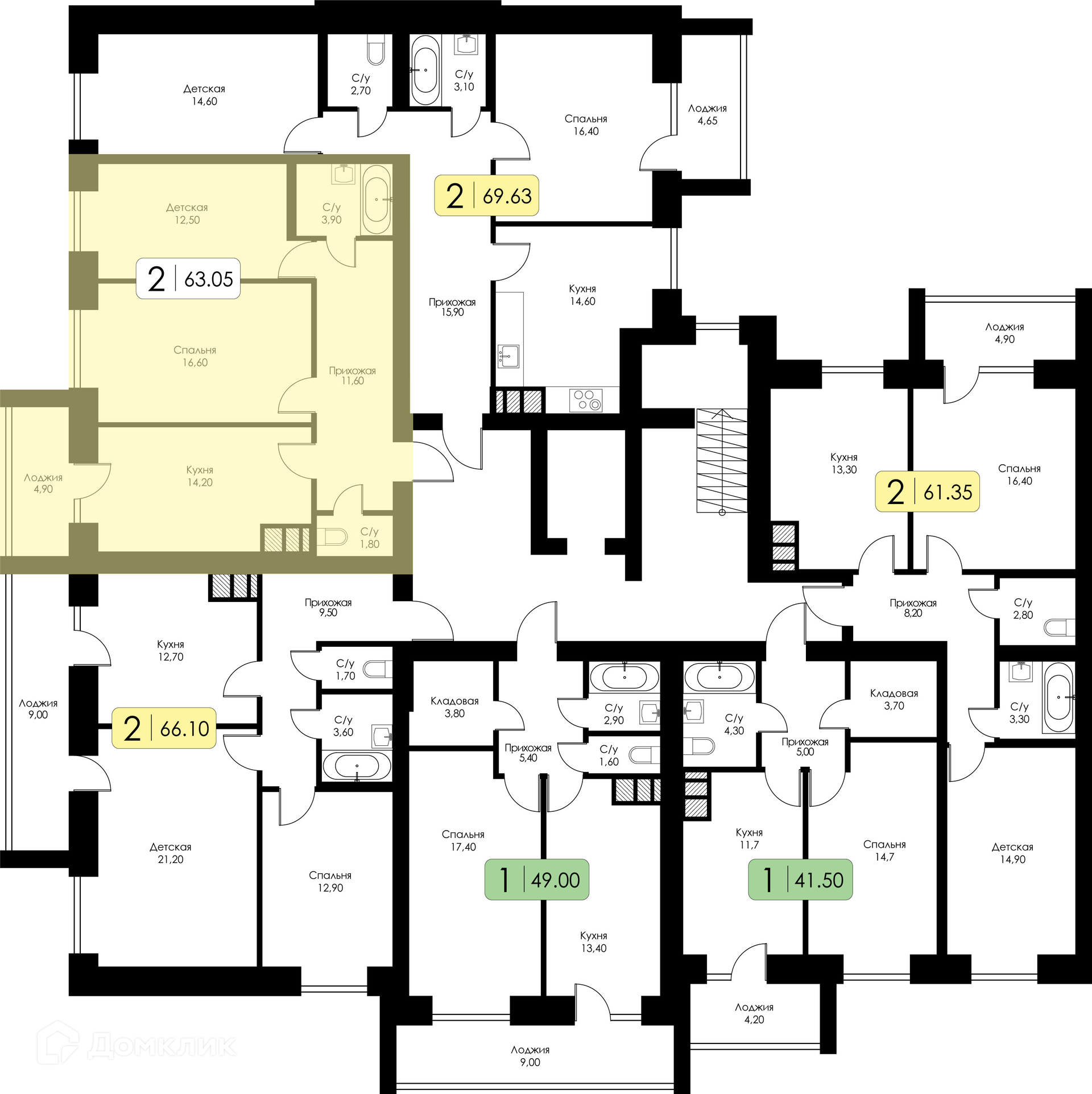 Площади квартир