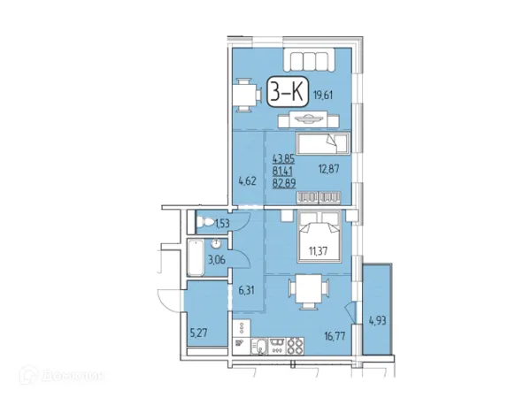 3 комн. квартира в Улан-Удэ в ипотеку от 62 323 руб/месяц