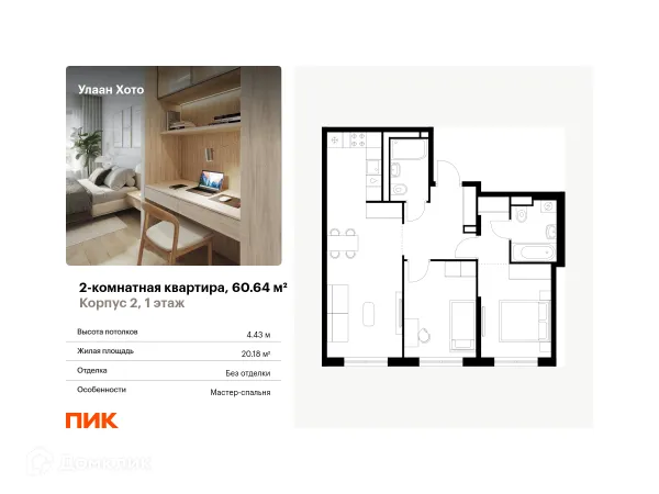 2 комн. квартира в Улан-Удэ в ипотеку от 60 981 руб/месяц
