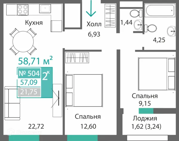 2 комн. квартира в Симферополе в ипотеку от 64 542 руб/месяц