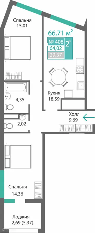 2 комн. квартира в Симферополе в ипотеку от 64 542 руб/месяц