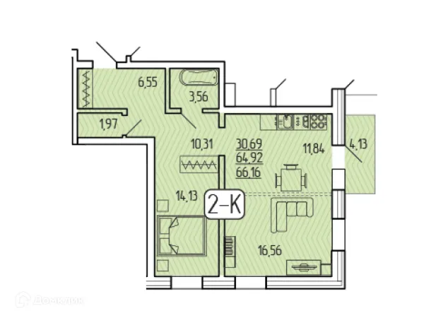 2 комн. квартира в Улан-Удэ в ипотеку от 56 153 руб/месяц
