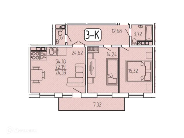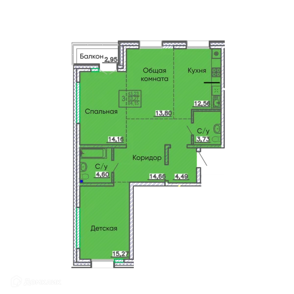 3 комн. квартира в Улан-Удэ в ипотеку от 64 281 руб/месяц