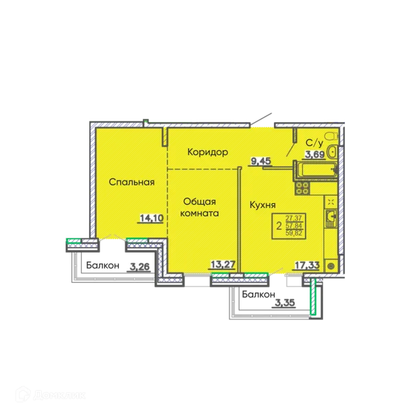2 комн. квартира в Улан-Удэ в ипотеку от 65 652 руб/месяц