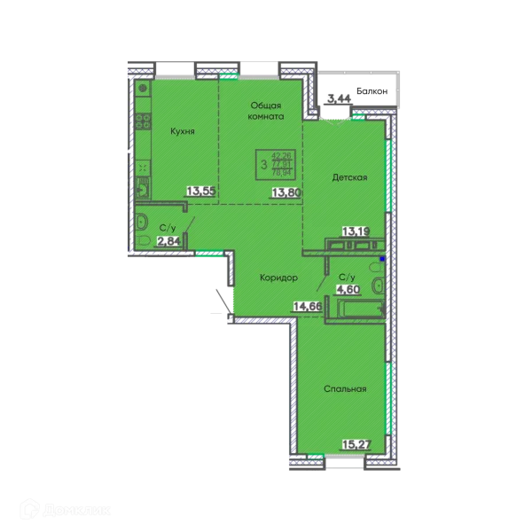 3 комн. квартира в Улан-Удэ в ипотеку от 81 755 руб/месяц