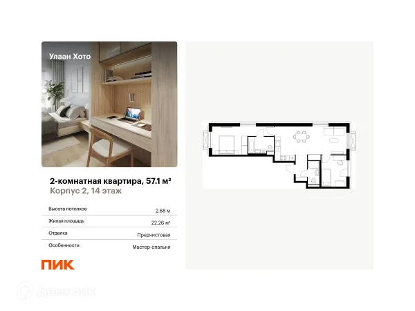 2 комн. квартира в Улан-Удэ в ипотеку от 66 082 руб/месяц