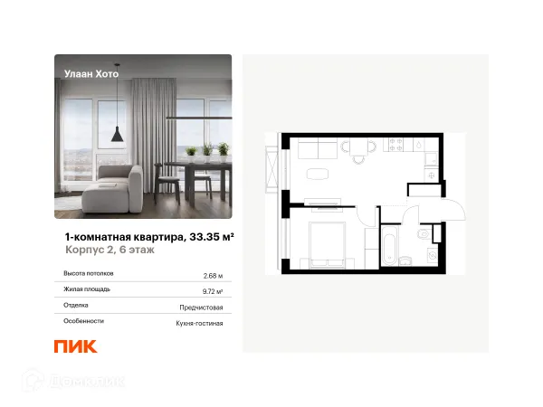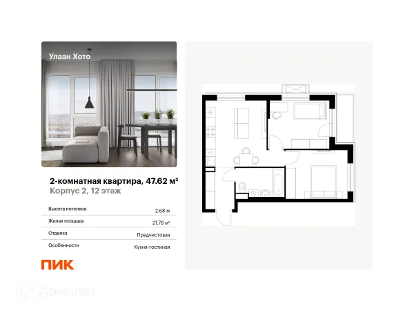 1 комн. квартира в Улан-Удэ в ипотеку от 47 811 руб/месяц