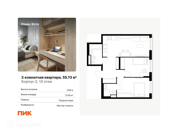 2 комн. квартира в Улан-Удэ в ипотеку от 63 899 руб/месяц