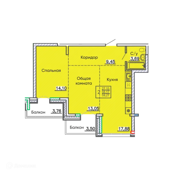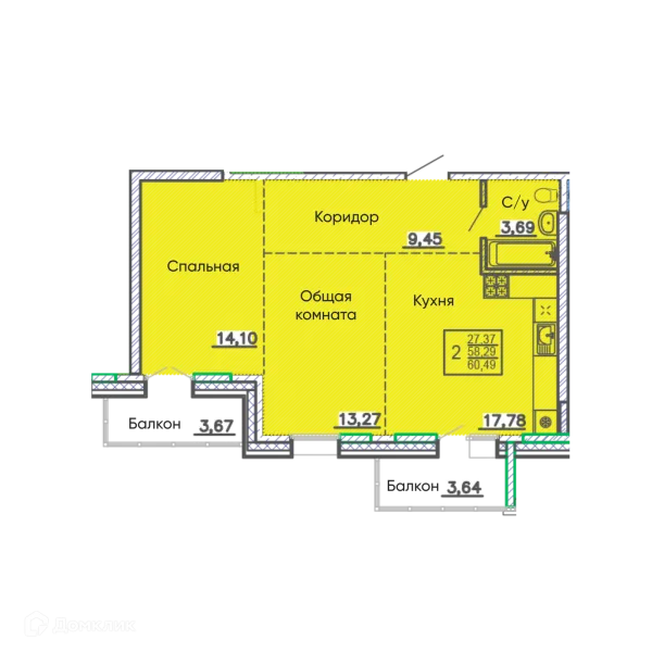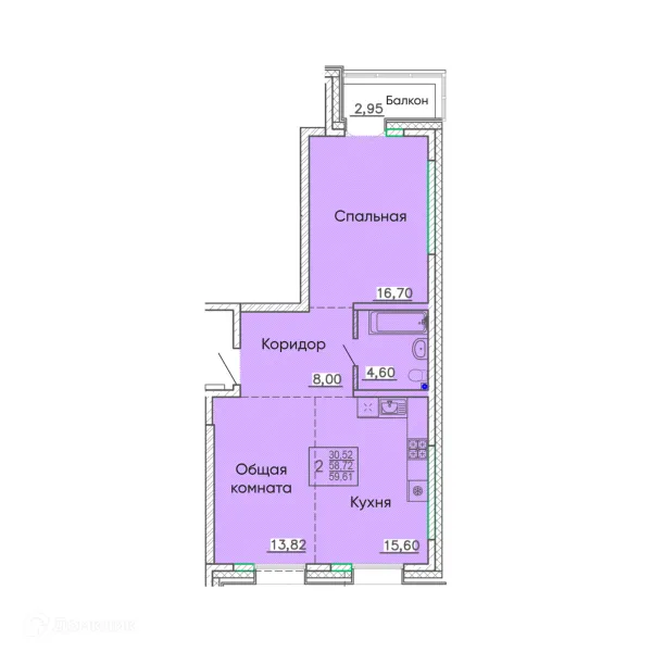 2 комн. квартира в Улан-Удэ в ипотеку от 57 978 руб/месяц