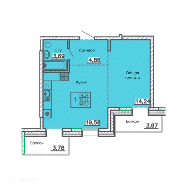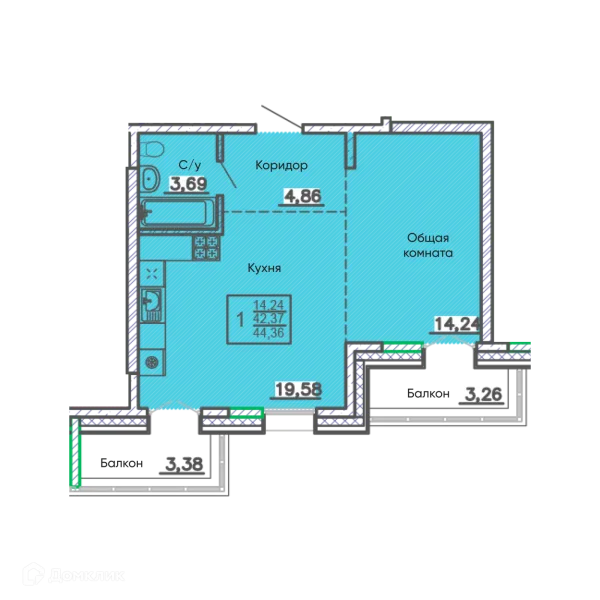 1 комн. квартира в Улан-Удэ в ипотеку от 50 231 руб/месяц