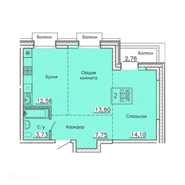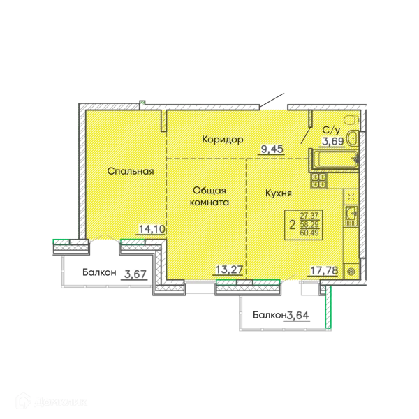 2 комн. квартира в Улан-Удэ в ипотеку от 58 955 руб/месяц