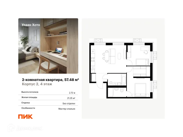 2 комн. квартира в Улан-Удэ в ипотеку от 68 408 руб/месяц