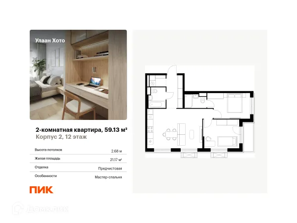 2 комн. квартира в Улан-Удэ в ипотеку от 65 067 руб/месяц