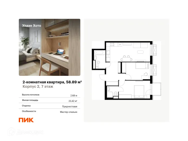 2 комн. квартира в Улан-Удэ в ипотеку от 70 799 руб/месяц