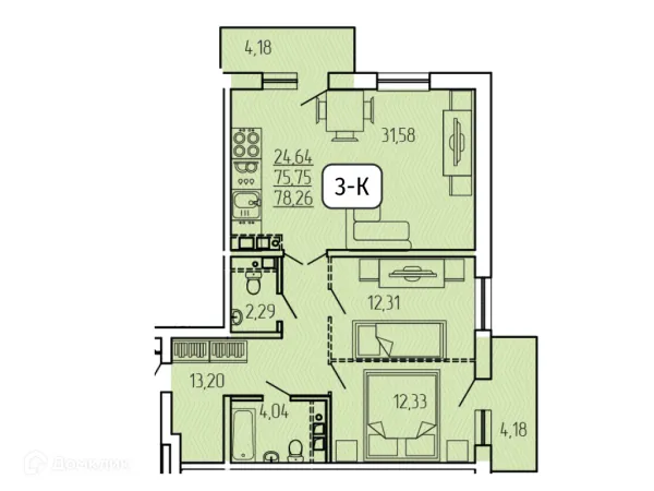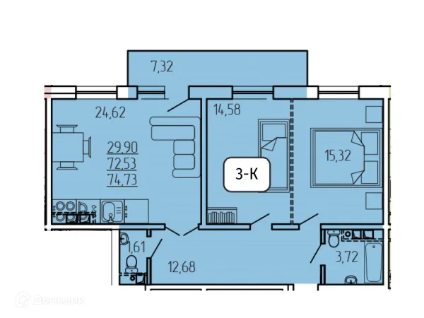 3 комн. квартира в Улан-Удэ в ипотеку от 60 299 руб/месяц