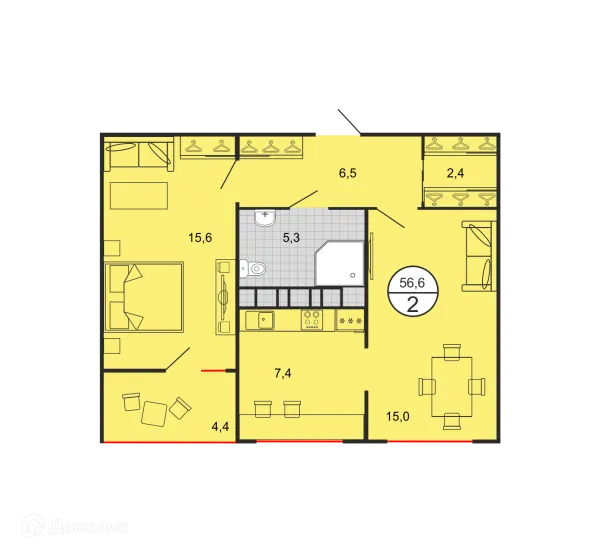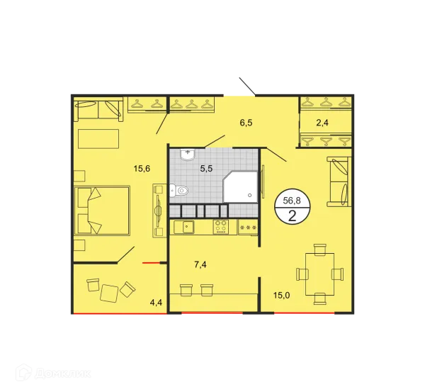 2 комн. квартира в Ставрополе в ипотеку от 68 616 руб/месяц