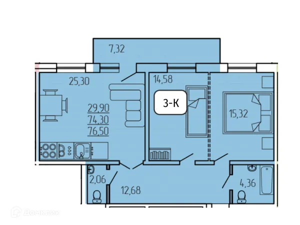 3 комн. квартира в Улан-Удэ в ипотеку от 57 957 руб/месяц