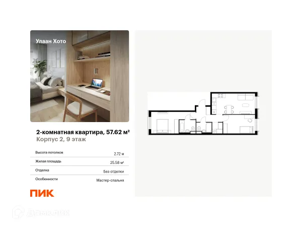 2 комн. квартира в Улан-Удэ в ипотеку от 62 074 руб/месяц