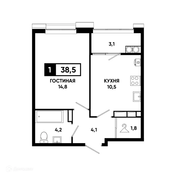 1 комн. квартира в Ставрополе в ипотеку от 38 485 руб/месяц