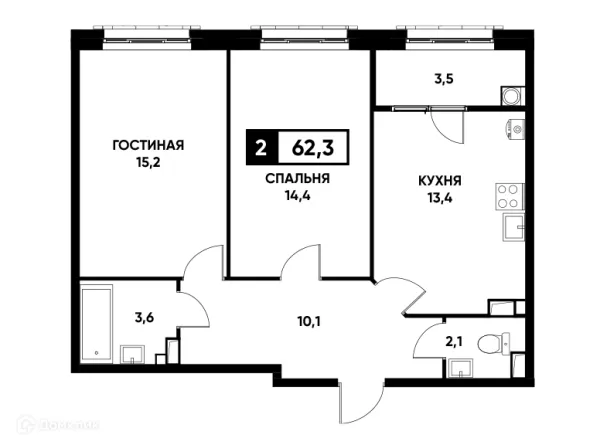 2 комн. квартира в Ставрополе в ипотеку от 44 189 руб/месяц