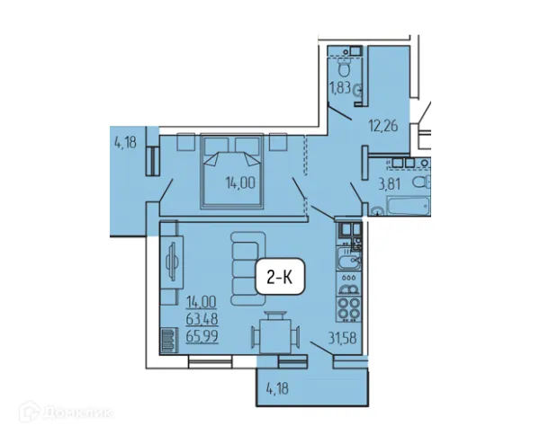2 комн. квартира в Улан-Удэ в ипотеку от 81 521 руб/месяц