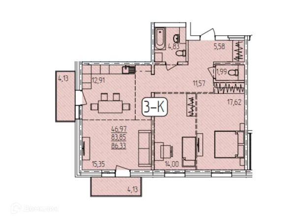 3 комн. квартира в Улан-Удэ в ипотеку от 66 517 руб/месяц