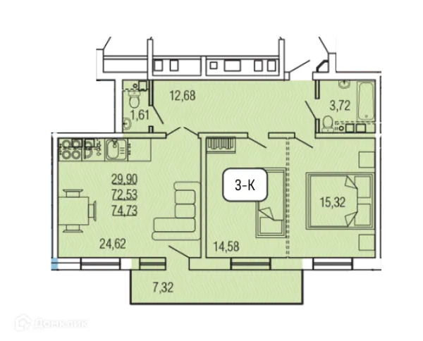 3 комн. квартира в Улан-Удэ в ипотеку от 60 299 руб/месяц